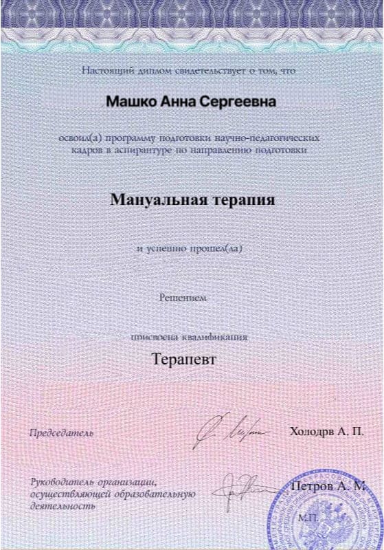 • 2019 — Ростовский государственный медицинский университет (психиатрия-наркология)